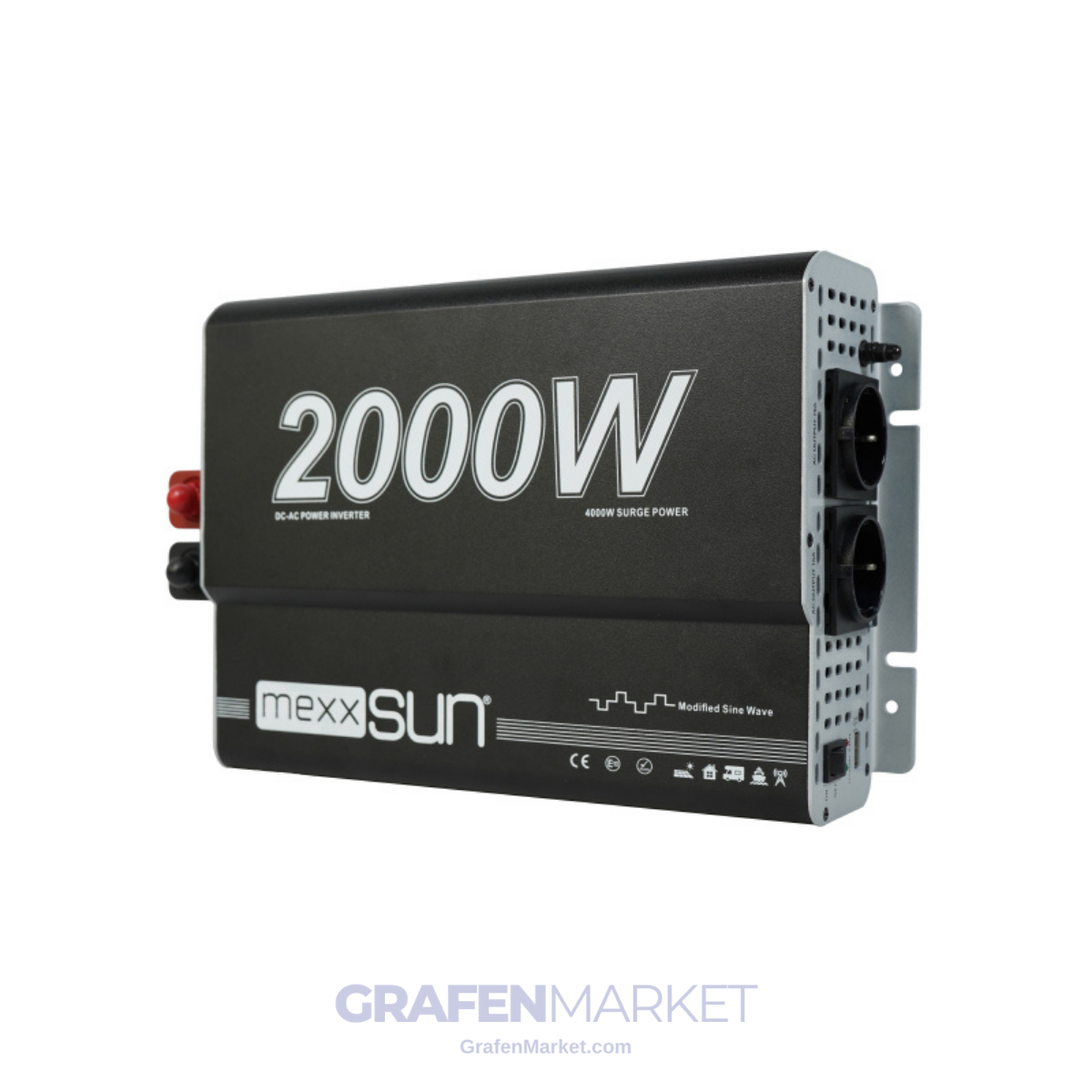 MEXXSUN 2 kW (2000W) 24 V Modifiye Sinüs İnverter, yüksek güç gerektiren mobil ve bağımsız enerji uygulamaları için tasarlanmış profesyonel bir güç dönüştürücüdür. 24V DC enerjiyi 220-240V AC çıkışa çevirerek elektrikli cihazların araç, tekne, karavan ve off-grid sistemlerde güvenli şekilde çalışmasını sağlar. 2000W nominal güç ve 4000W tepe kapasitesi, yüksek başlangıç akımı çeken ekipmanlarda stabil performans sunar.