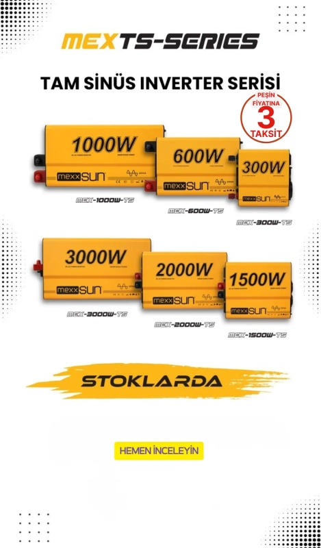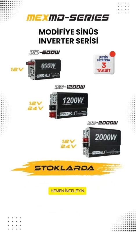 MEXXSUN 2 kW (2000W) 12 V UPS Tam Sinüs İnverter – Remote Ekran